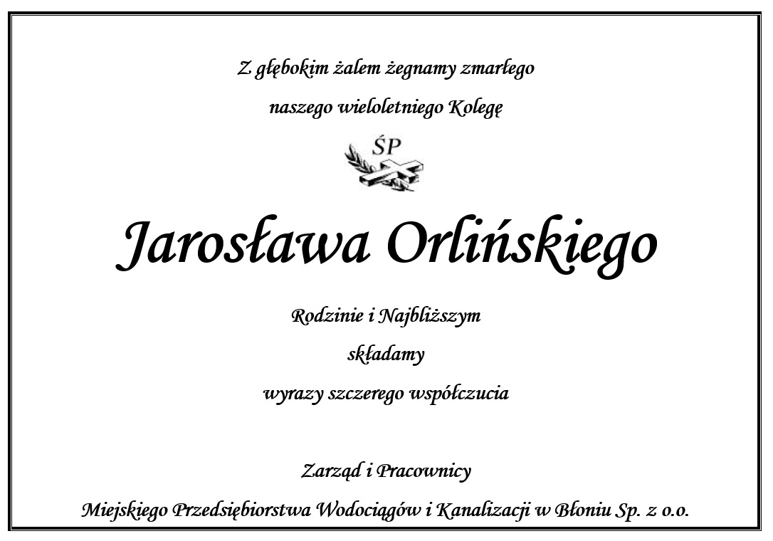 Z głębokim żalem żegnamy zmarłego, naszego wieloletniego Kolegę, Jarosława Orlińskiego